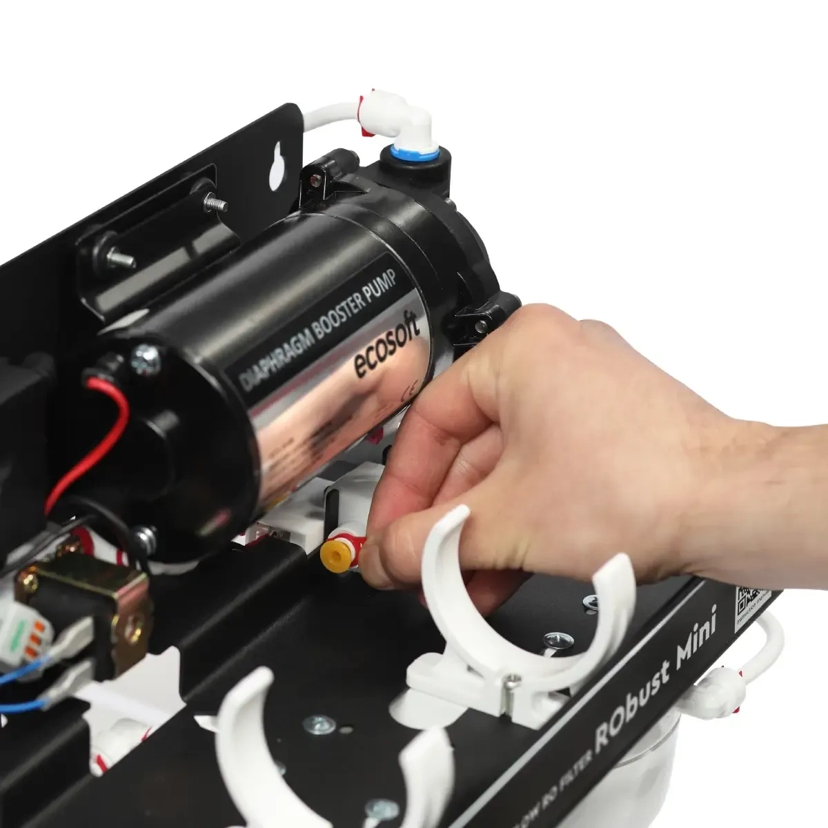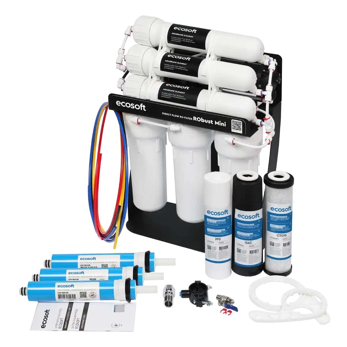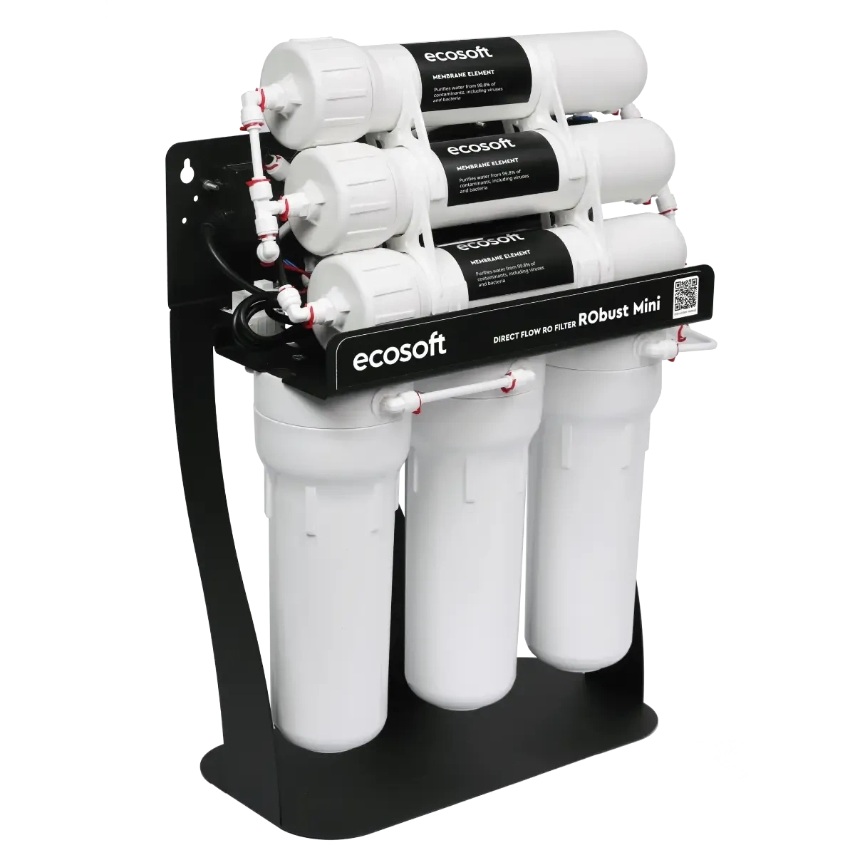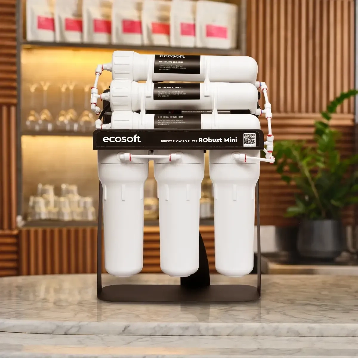 • ECOSOFT RObust Mini to kompaktowy filtr odwróconej osmozy bez zbiornika. Oczyszcza do 60 l wody na godzinę, poprawia smak kawy i chroni sprzęty przed kamieniem.