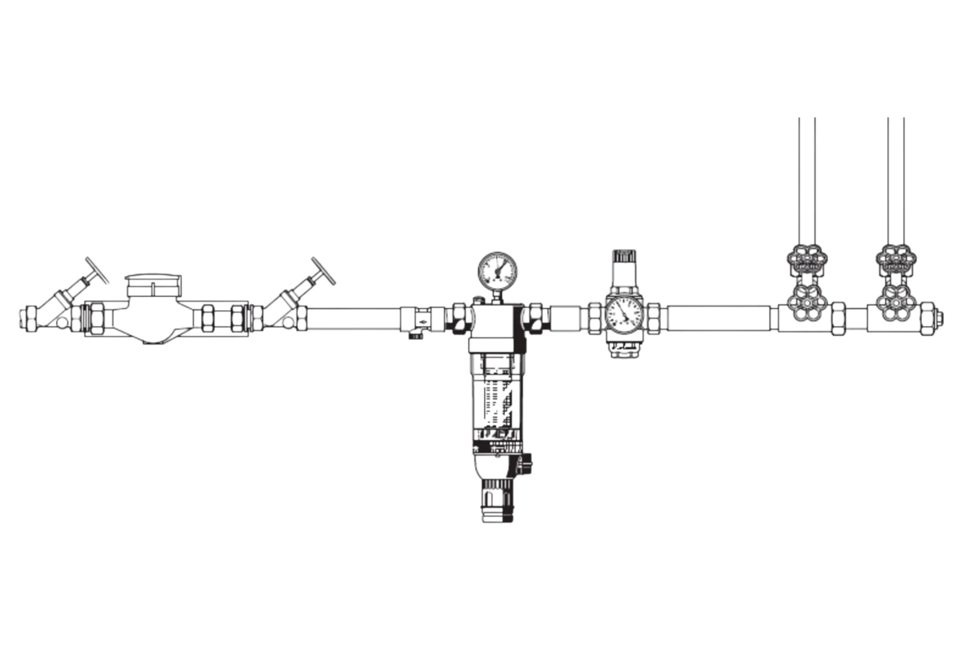 - Zainstaluj filtr bezpośrednio za wodomierzem