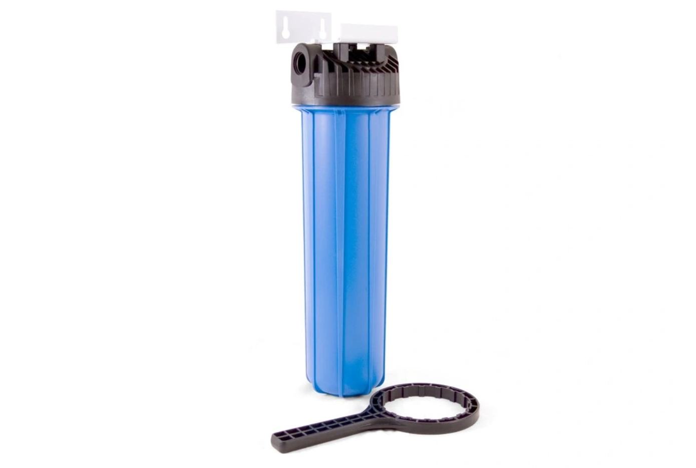 Solidny filtr Big Blue na wkłady wymienne 20 cali. Może być użyty jako filtr wstępny z wkładem sznurkowym przed np. zmiękczaczem wody lub za nim z wkładem węglowym. Wysokiej jakości tworzywo sprawia, że korpus nie pęka przy skokach ciśnienia.