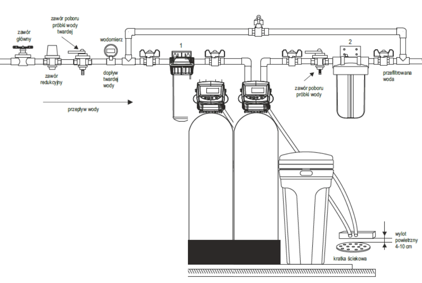 przed zmiękczaczem należy zainstalować filtr wstępny,