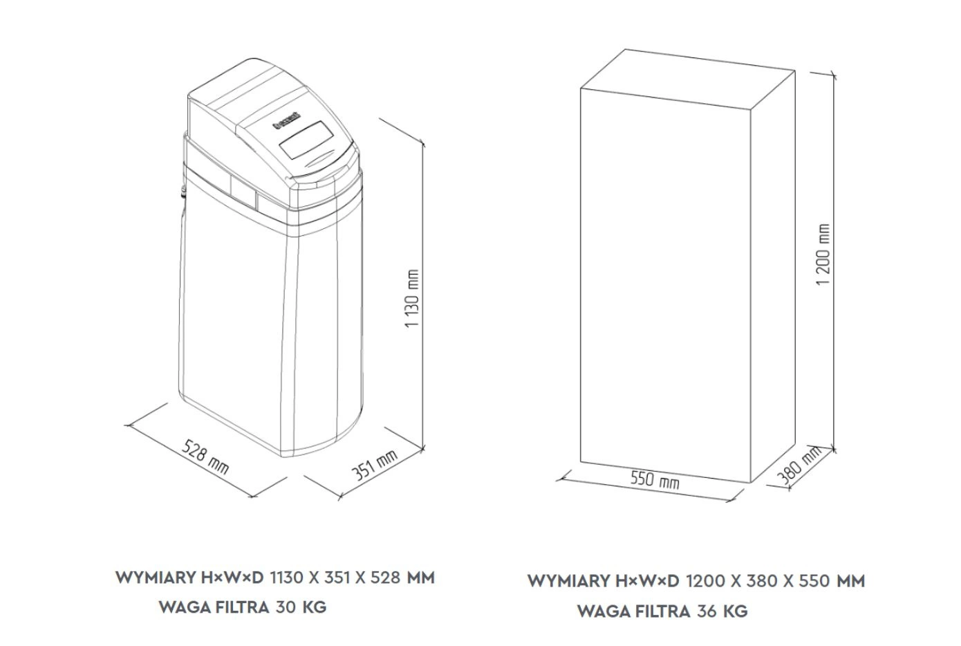 Wymiary zmiękczacza wody ecosoft gold 250 - opakowanie i urządzenie